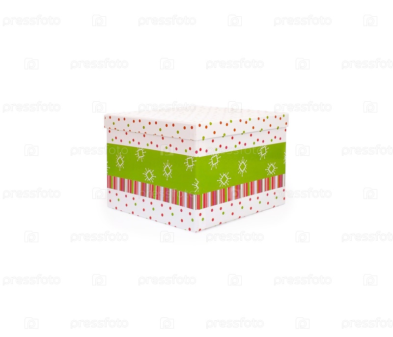 Подарочная коробка с зелеными орнаментами изолирована на белом фоне