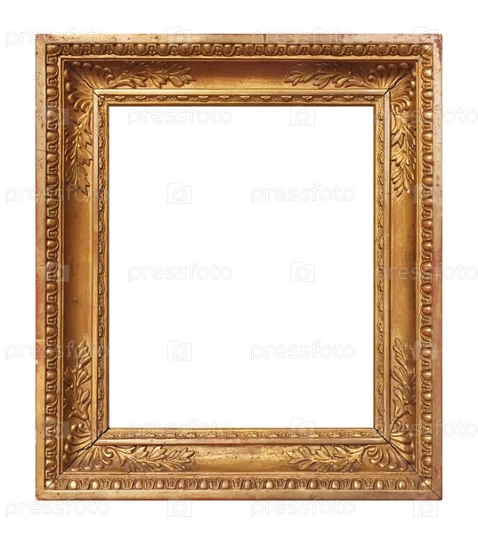 Золотая рама для картин, зеркал или фотографий, изолированных на белом фоне