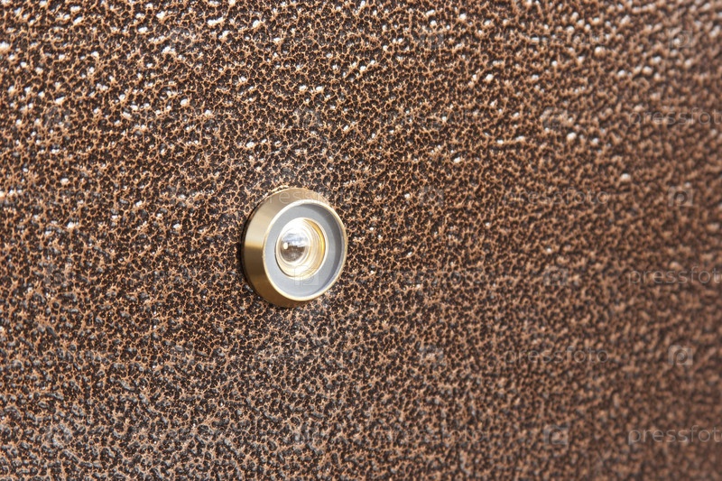 Изолированная металлическая входная дверь и шпионское отверстие: фон и текстура