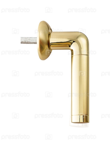 Золотая дверная ручка с замком, изолированным на белом фоне