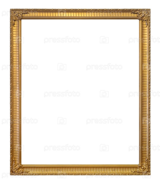 Золотая рама для картин, зеркал или фотографий, изолированных на белом фоне