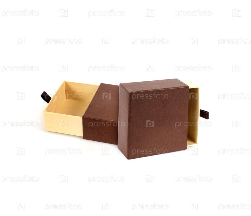 Коричневый подарочный ящик изолированный на белом фоне