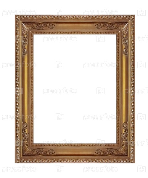 Золотая рама для картин, зеркал или фотографий, изолированных на белом фоне
