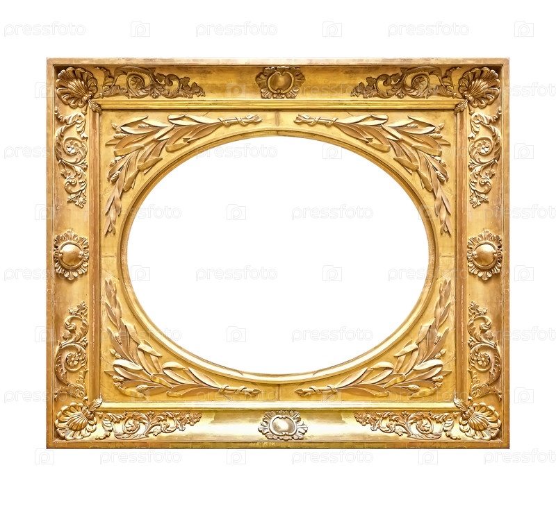 Золотая рама для картин, зеркал или фотографий, изолированных на белом фоне