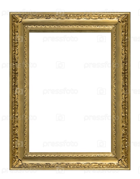 Золотая рама для картин, зеркал или фотографий, изолированных на белом фоне