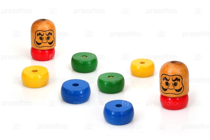 Детская игрушка заложила кольцевую башню 'Японский самурай', изолированную на белом фоне для создания графического дизайна