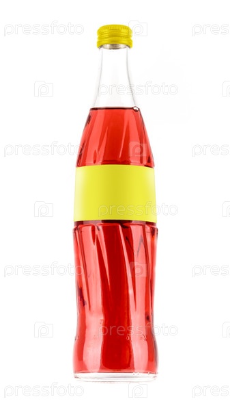 Разместите бутылки безалкогольных напитков на белом фоне с пустой этикеткой