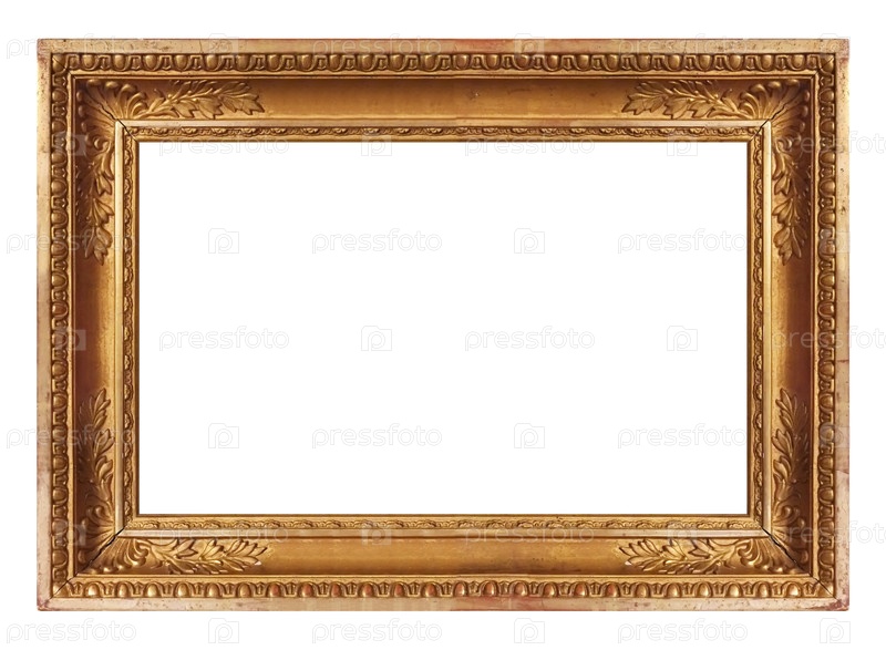 Панорамная золотая рама для картин, зеркал или фотографий, изолированных на белом фоне