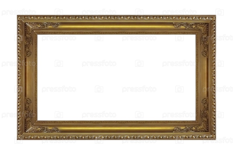 Панорамная золотая рама для картин, зеркал или фотографий, изолированных на белом фоне