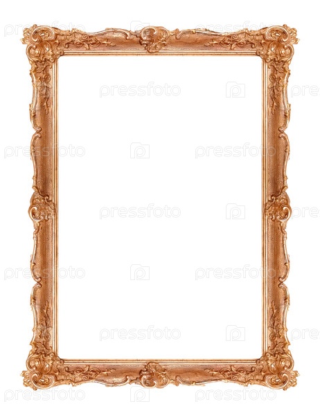 Золотая рама для картин, зеркал или фотографий, изолированных на белом фоне