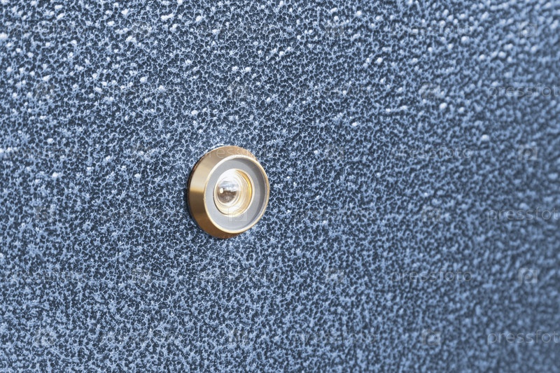 Изолированная металлическая входная дверь и шпионское отверстие: фон и текстура