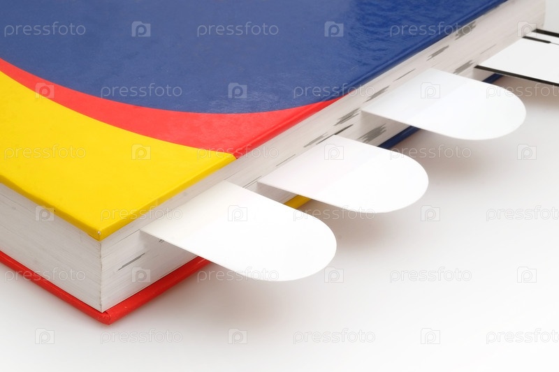 Книга в цветной обложке с белыми листами, изолированными на белом фоне