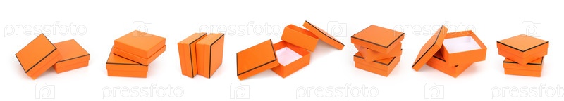Оранжевая коробка, изолированная на белом фоне