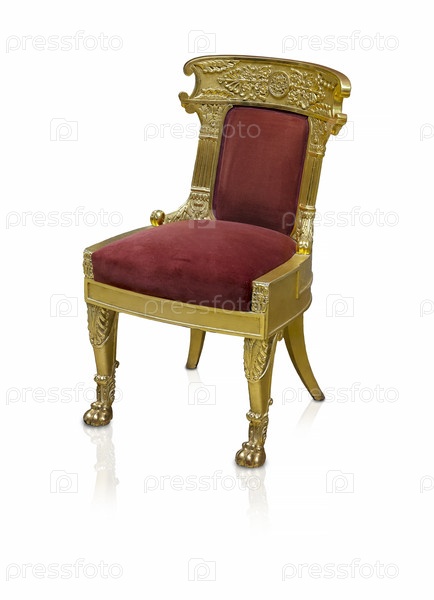 Золотое кресло изолировано на белом фоне