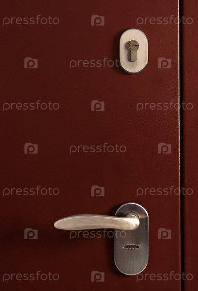 Изолированная поверхность металлической двери с замком и ручкой