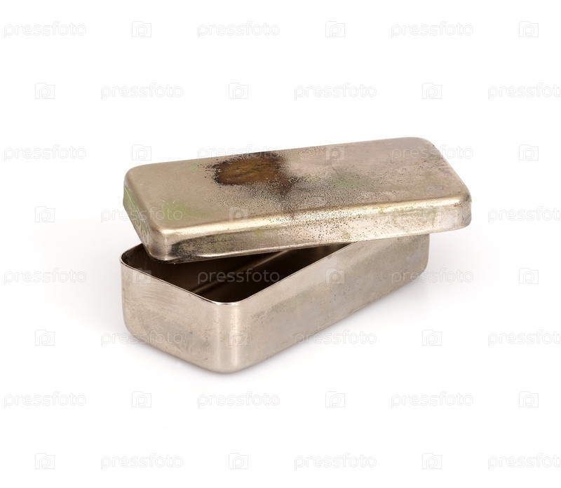 Старый металлический медицинский чехол для шприцев, выделенный на белом фоне