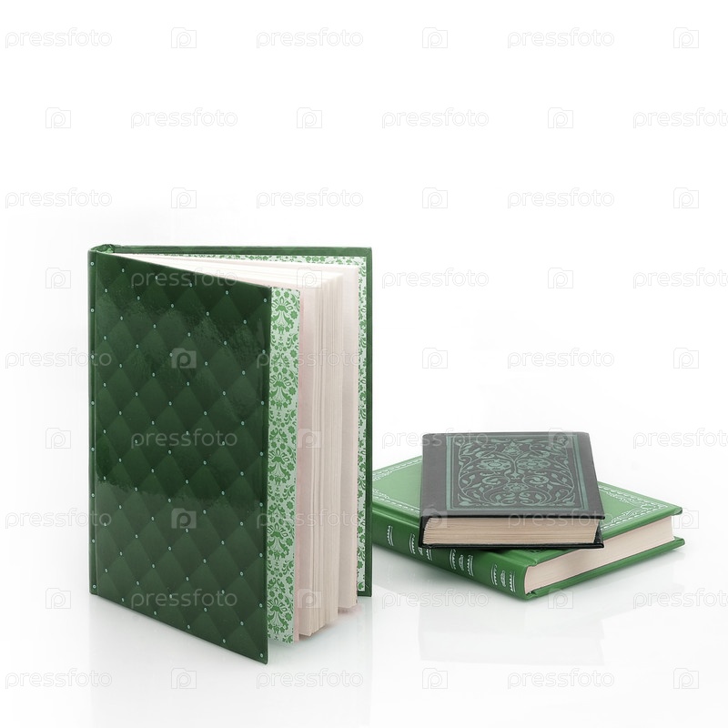 Куча книг в цветных обложках с белыми листами, изолированными на белом фоне