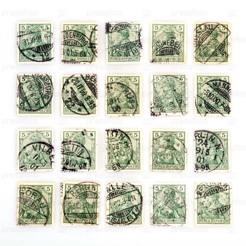Немецкие почтовые марки 1902 года Надписи на немецком языке означают 'Германская империя'