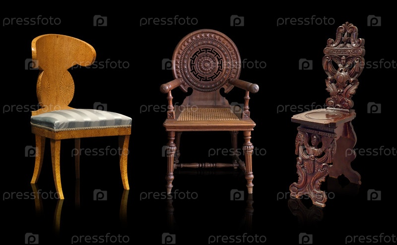 Деревянные стулья изолированы на черном фоне
