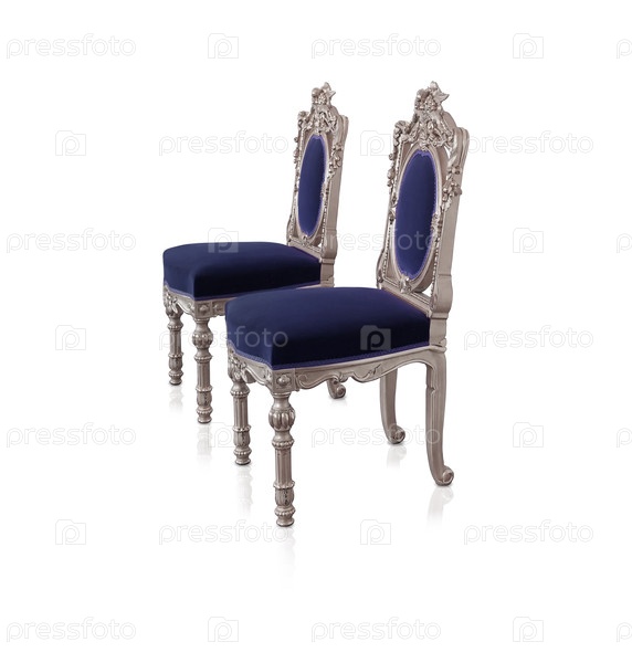Два серебряных стула изолированы на белом фоне