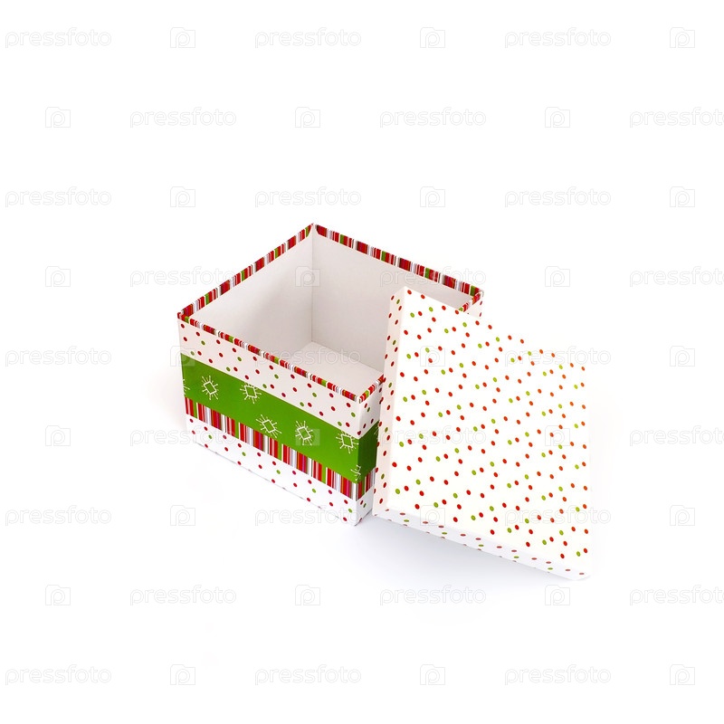 Подарочная коробка с зелеными орнаментами, изолированными на белом фоне