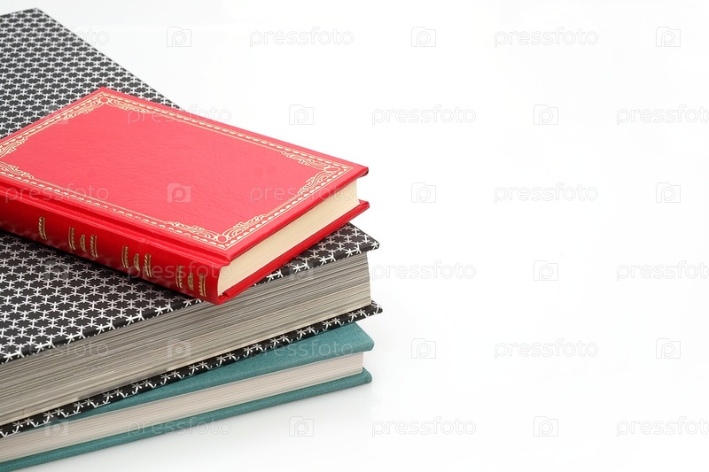 Куча книг в цветных обложках с белыми листами, изолированными на белом фоне