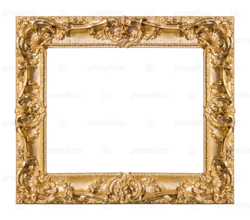 Золотая рама для картин, зеркал или фотографий, изолированных на белом фоне