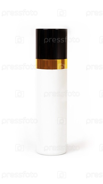 Положение косметического баллона с спреем, изолированного на белом фоне