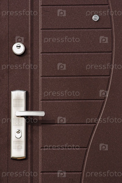 Поверхность металлической двери с замком и ручкой