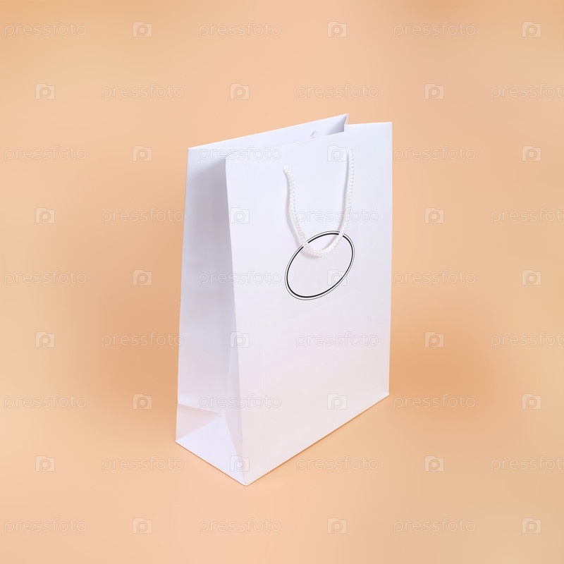 Белый бумажный пакет, выделенный на простом фоне