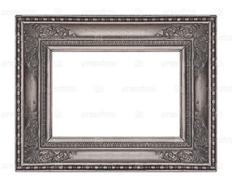 Серебряная рама для картин, зеркал или фотографий, изолированных на белом фоне