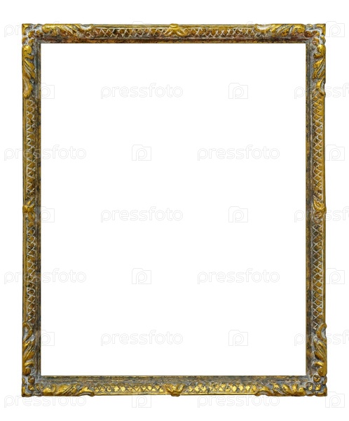 Золотая рама для картин, зеркал или фотографий, изолированных на белом фоне
