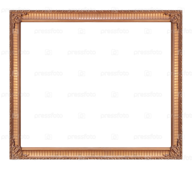 Золотая рама для картин, зеркал или фотографий, изолированных на белом фоне