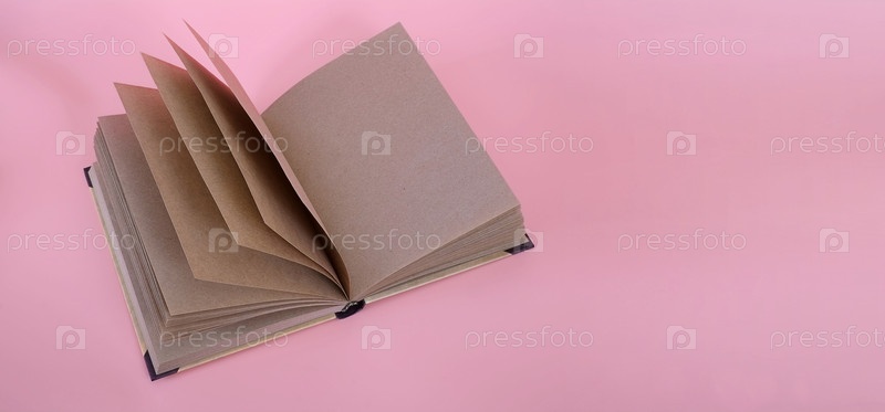 Ноутбук с ремесленной бумагой, изолированной на розовом фоне