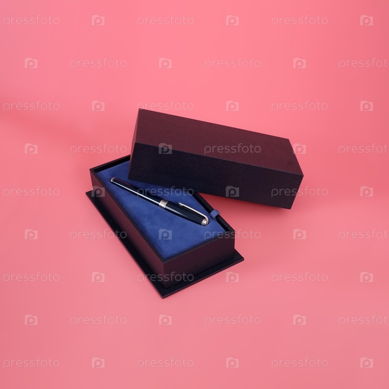 Серебряная шариковая ручка изолирована на розовом фоне