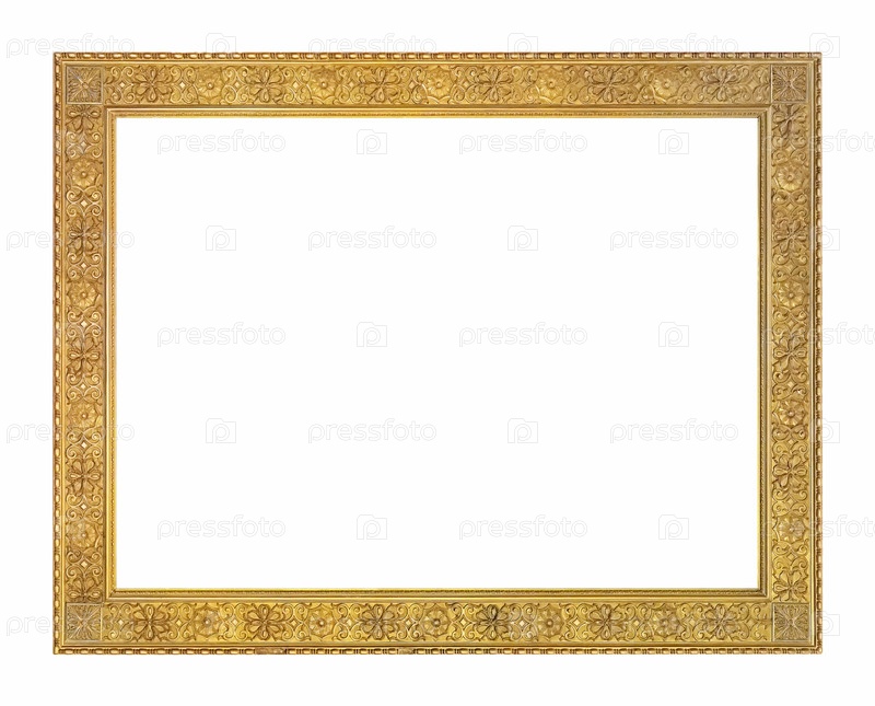 Золотая рама для картин, зеркал или фотографий, изолированных на белом фоне