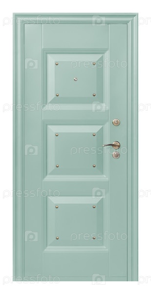 Модель металлических входных дверей, изолированная на белом фоне