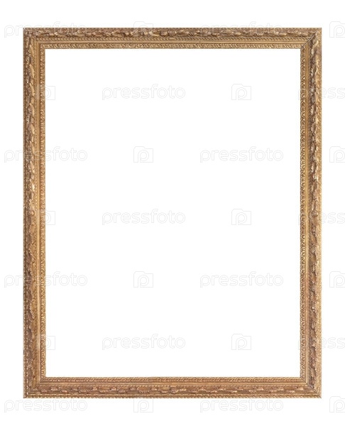 Золотая рама для картин, зеркал или фотографий, изолированных на белом фоне