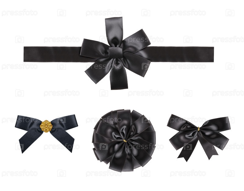 Набор декоративных черных шелковых луков, изолированный на белом фоне