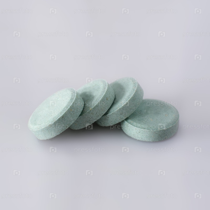 Зеленые круглые таблетки, выделенные на белом фоне