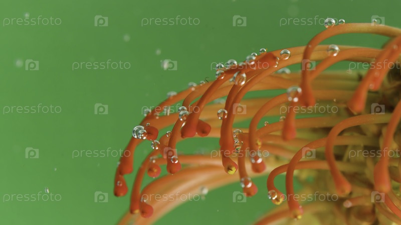 Зеленый фон. резервные кадры. Вода с пузырями, в которой выступают лепестки цветка