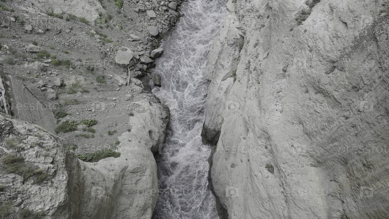Горный водопад. продолжайте. тонкие ручьи с каплями воды проходят через горные скалы и падают вниз