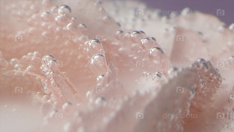 Близкий план розовых лепестков с пузырями. резервные кадры. Нежные листья роз с пузырьками под водой. Роза в освежающей чистой воде с пузырями