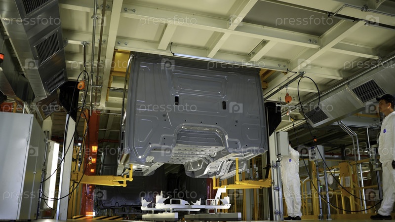 Москва, Россия - 11 мая 2022.Сцена Автосервис, где собирают и демонтируют большие автомобили.Высококачественный 4k кадры