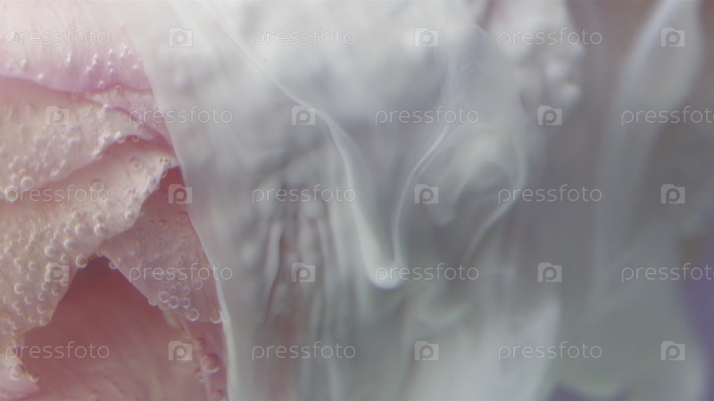 Нежный розовый цвет. Резервные кадры. Тяжелый белый дым, который допускается на красивых лепестках розового цветка