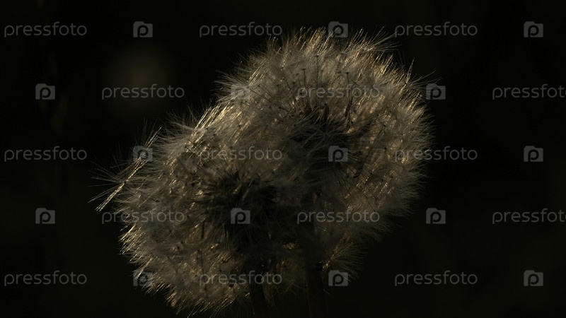 Роскошные одуванчики. творческие. маленькие цветы светятся на солнце, стоящие перед зеленой молодой травой