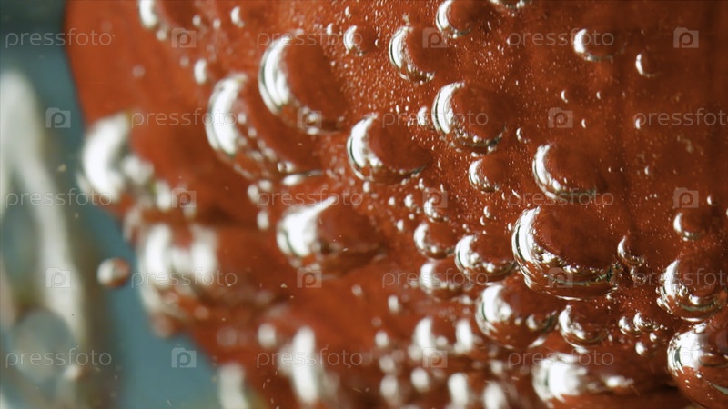 Закройте лепестки мягких красных цветов внутри стеклянного контейнера с чистой водой. резервные кадры. движение воздушных пузырей