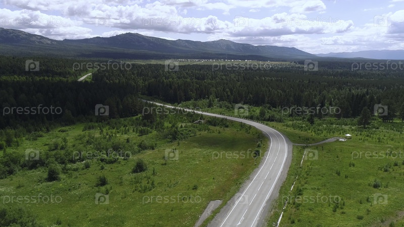 Вид на красивую автомагистраль с лесом и зеленью на фоне гор. Сцена. ландшафтная дорога на фоне зелёных лесов и гор в летнее время
