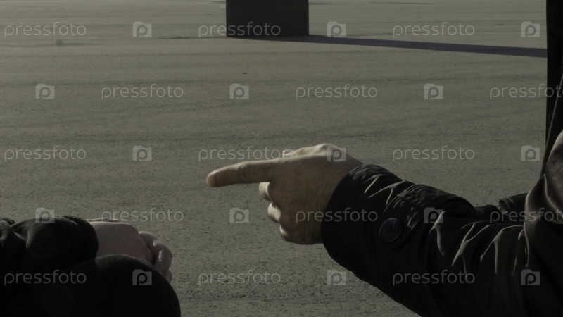 Язык жестов. HDR. Сильная мужская рука, которая показывает что-то своему партнеру в эмоциональном диалоге