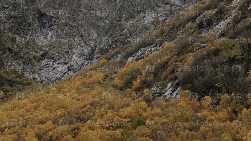 горные скалы над осенним лесом. творческий. каменистый склон горы опускается в лесное пространство. скалистые склоны и цветовые леса осени у подножия